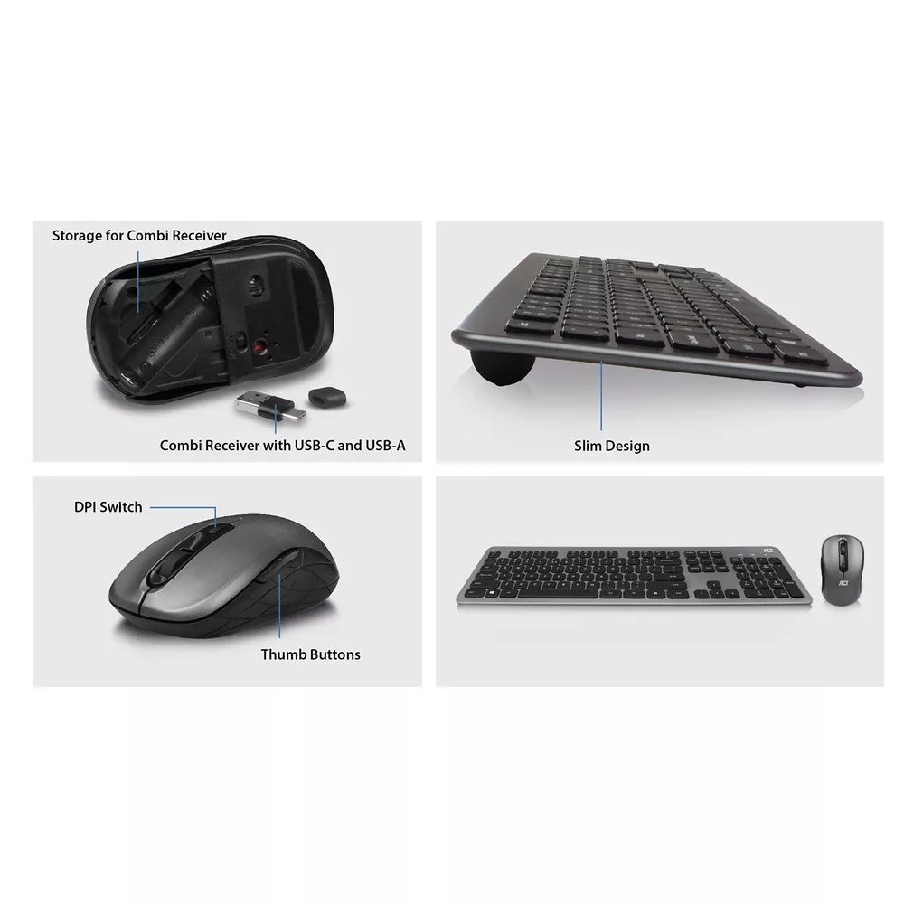 Az AC5710 vezeték nélküli billentyűzet és egér készlet egy vékony, teljes méretű billentyűzetet és egy 1600 DPI-s egeret tartalmaz. A billentyűzet csendes, alacsony profilú billentyűkkel és 13 multimédiás billentyűvel rendelkezik. Az egér DPI-kapcsolóval rendelkezik, optikai felbontása 800-1200-1600 DPI. Mind a billentyűzet, mind az egér USB-C és USB-A kombi vevővel működik, és intelligens energiatakarékos rendszerrel és be-/kikapcsolóval van felszerelve.
