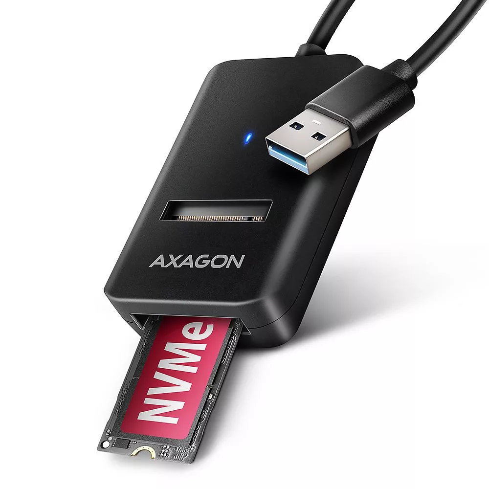 Az új lapkakészletnek köszönhetően egyedülálló funkció az M.2 NVMe és SATA lemezek használatának lehetősége. Nem kell azon gondolkodnia, hogy az adapter melyik M.2 meghajtó típushoz készült, egyszerűen minden típust olvas. Az adapter másik előnye, hogy a lemez nagyon gyorsan behelyezhető az adapter foglalatába. A lemezek cseréje is egyszerű. Ezek a funkciók teszik adaptert nagyon praktikus és hasznos eszközzé a különböző típusú meghajtókkal való gyakori munkavégzéshez. Ezáltal ideális eszköz a lemezek tesztelésére, adatátvitelre, biztonsági mentésre és helyreállításra stb.