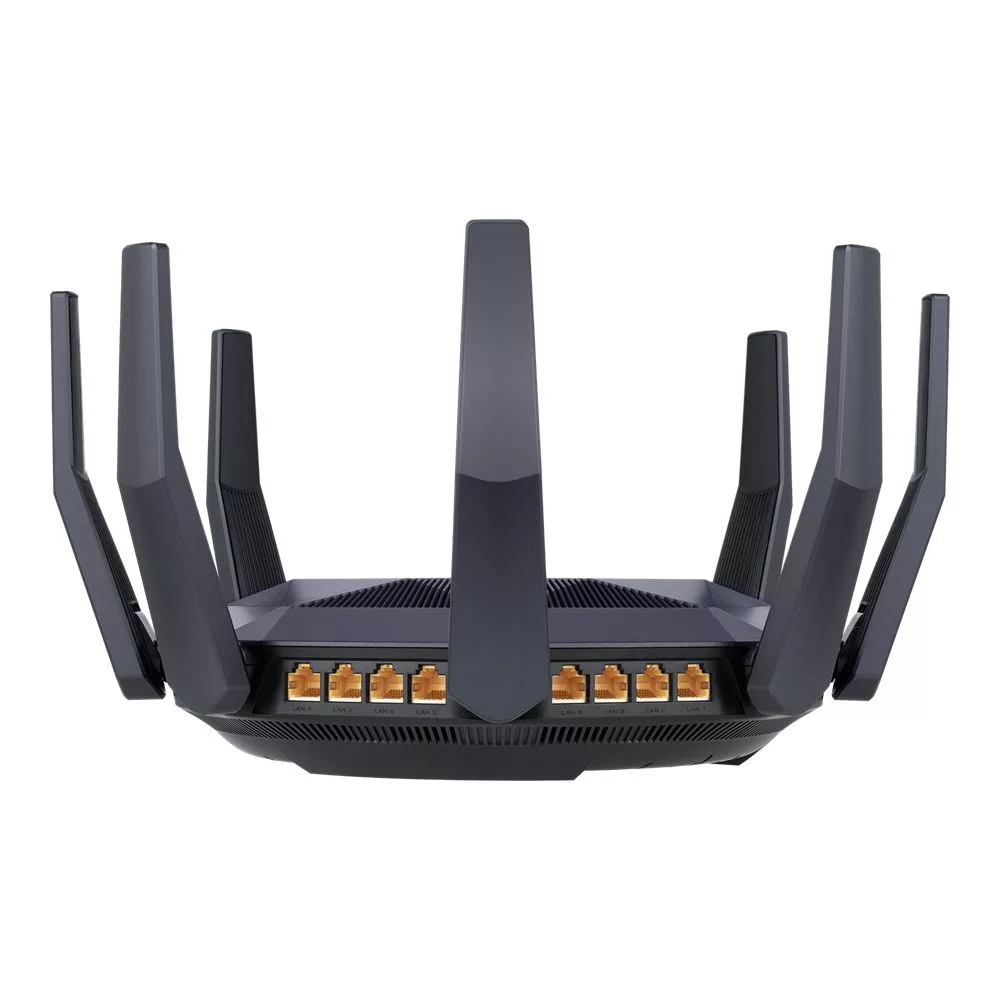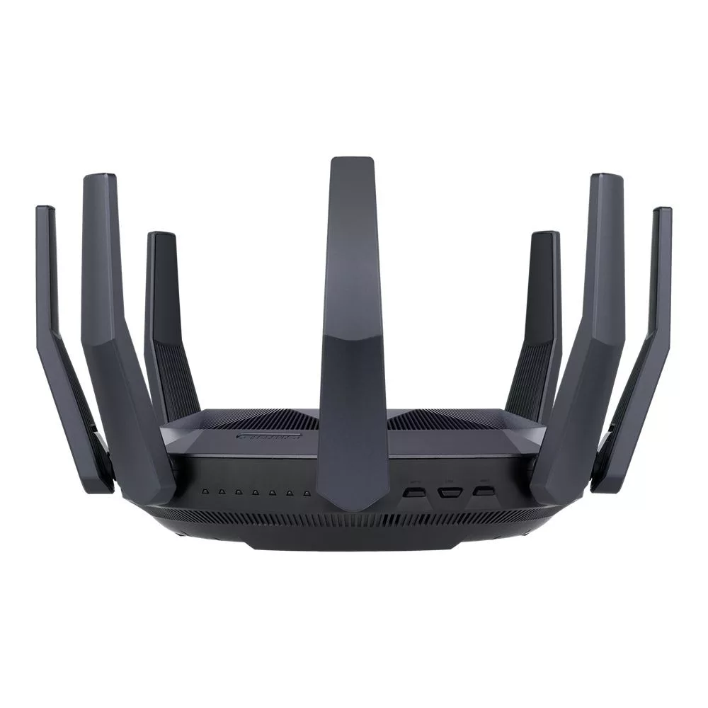 Az RT-AX89X egy 8x8 kétsávos WiFi router, amely 1024-QAM-et biztosít a drámaian gyorsabb vezeték nélküli kapcsolatokhoz. A mintegy 6000 Mbps teljes hálózati sebességgel - 1148 Mbps a 2,4 GHz-es sávban és 4804 Mbps az 5 GHz-es sávban - az RT-AX89X akár 2,8x gyorsabb, mint a 802.11ac 4x4 kétsávos útválasztók.