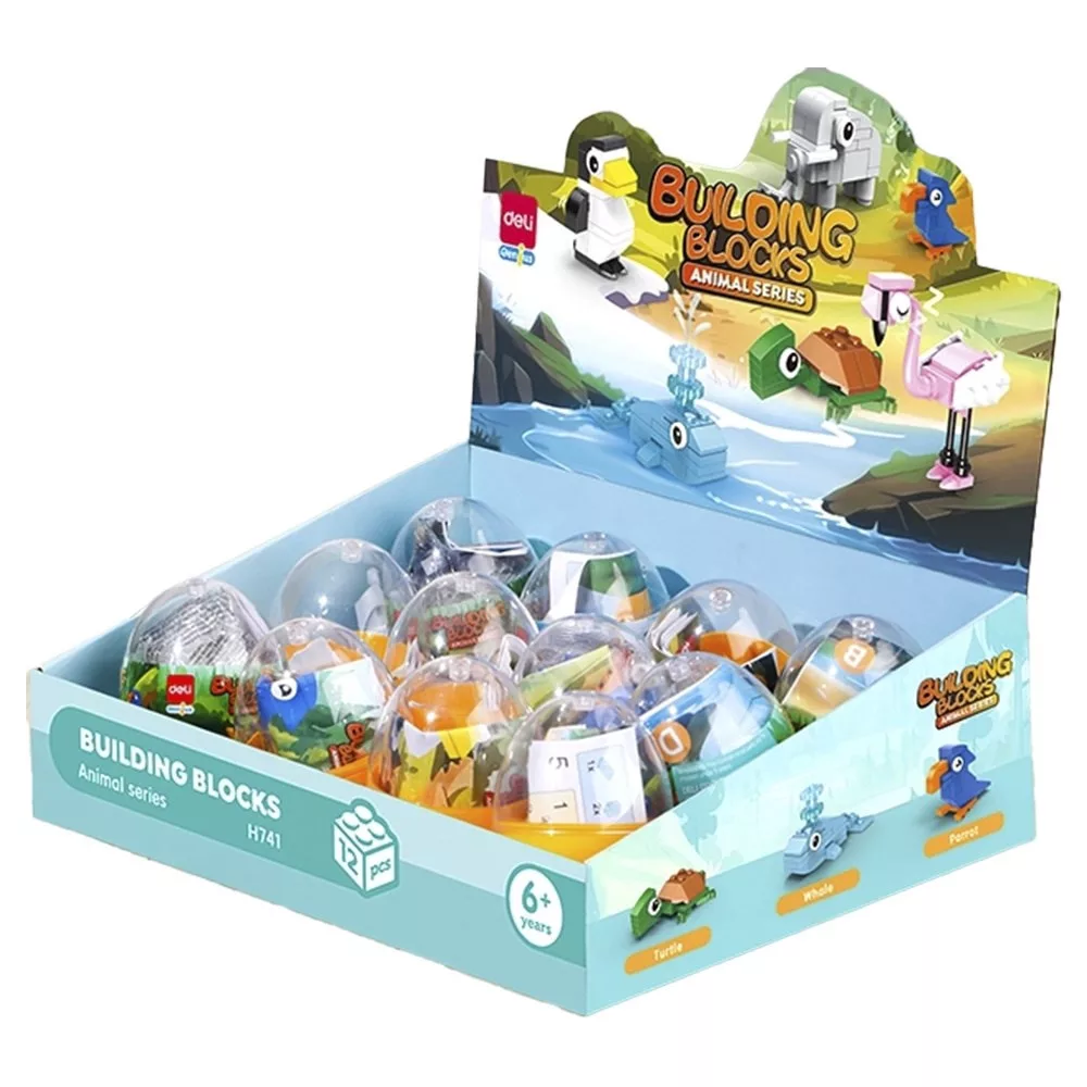 Építőjáték 6+ éves kortól. Vicces, tojás formájú csomagolásban. A készlet lehetővé teszi, hogy részletes állat modelleket építsenek, fejlesztve ezzel a kreativitást. Egy displayben 12db tojás található / 6 különböző meglepetés figurával. Tartós, hosszú élettartam. Display mérete: 64x42x58cm