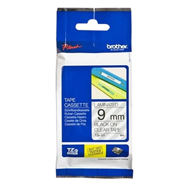 Feliratozó szalag BROTHER TZe-121 9mmx8m laminált átlátszó alalpon fekete írásszín