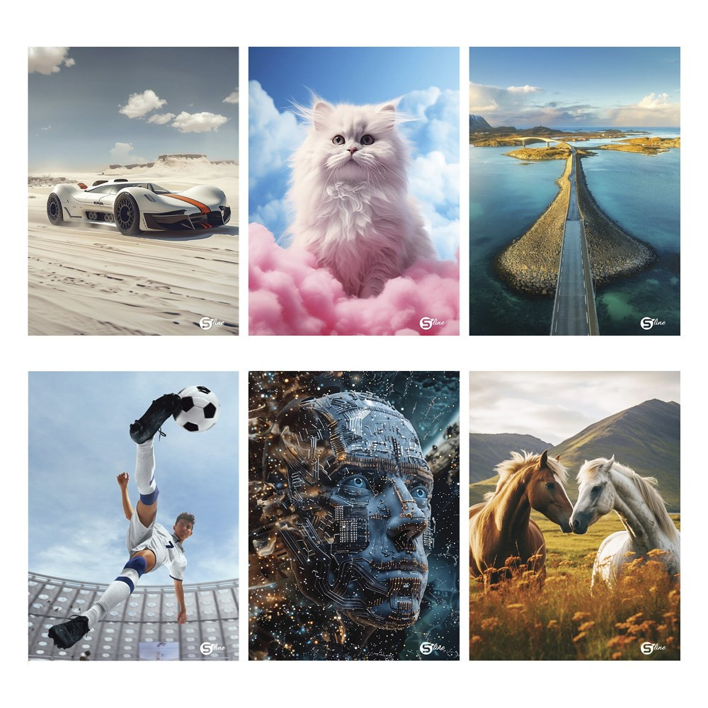 Karton borítású fényes laminálású különböző mintás S-Line 1 A/4 52 lapos vonalas füzet, vegyes mintákkal/csomag.