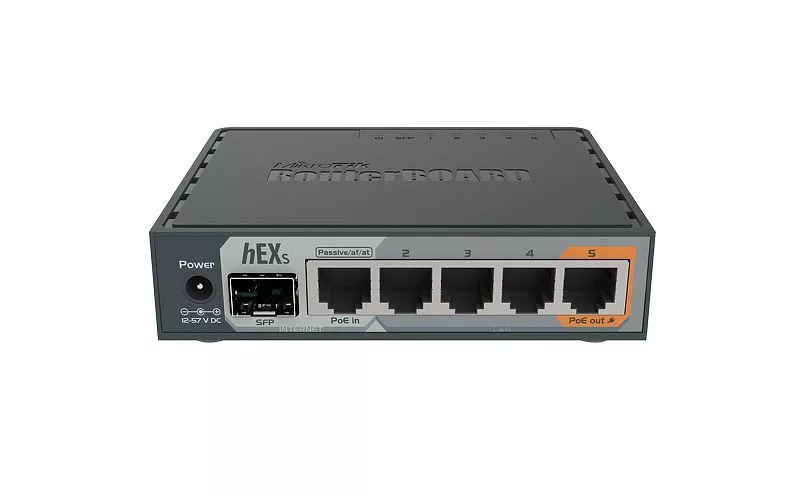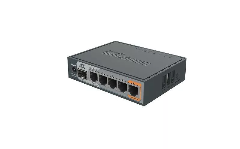 A hEX S egy öt portos Gigabit Ethernet router olyan helyekre, ahol nincs szükség vezeték nélküli kapcsolatra. A hEX S a hEX-hez képest egy SFP-porttal és PoE-kimenettel is rendelkezik az utolsó porton.
