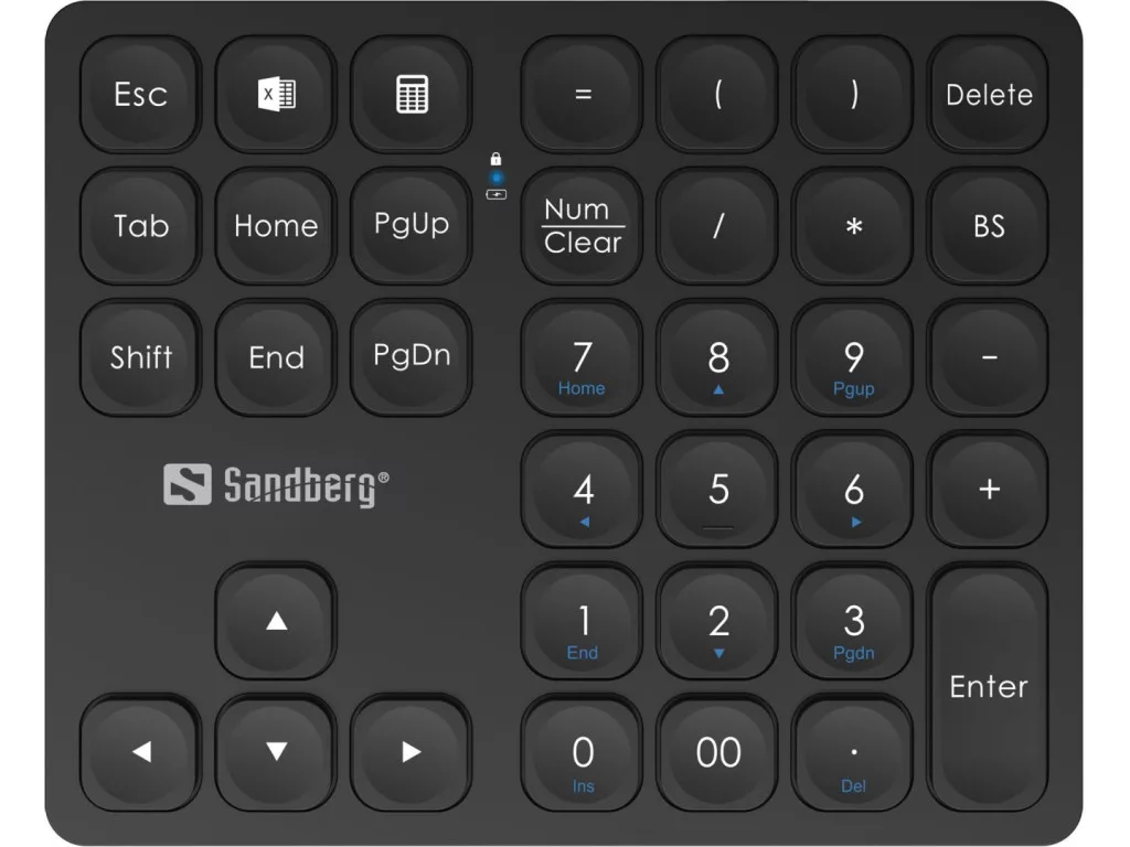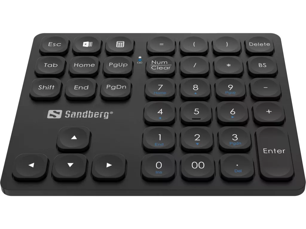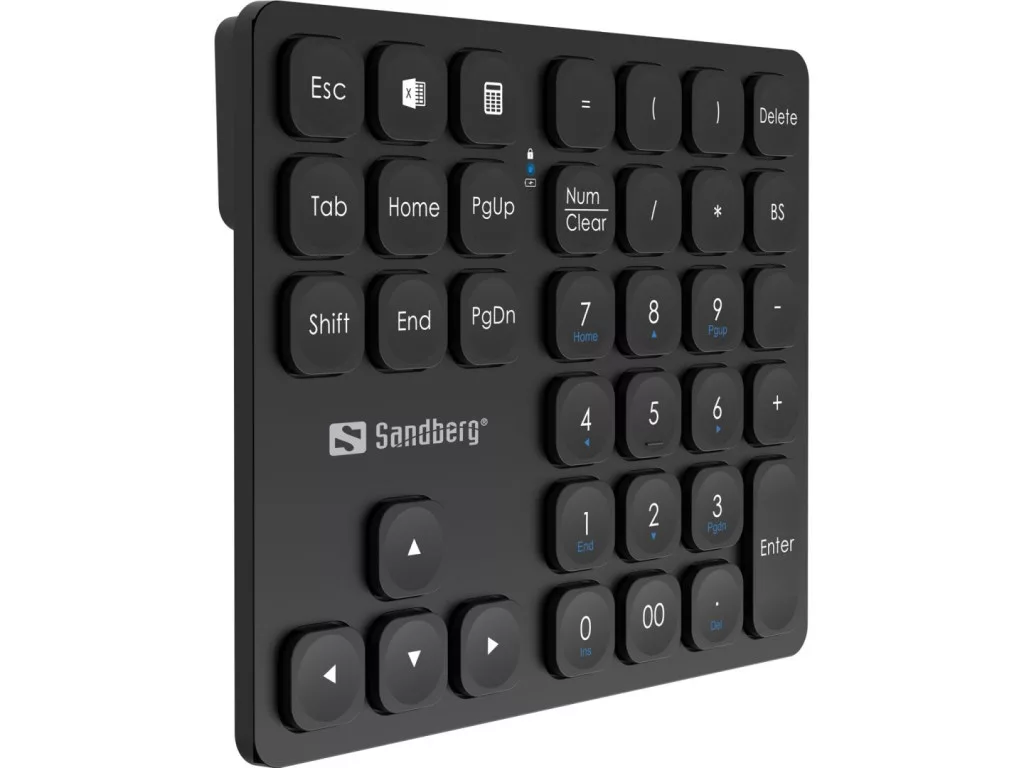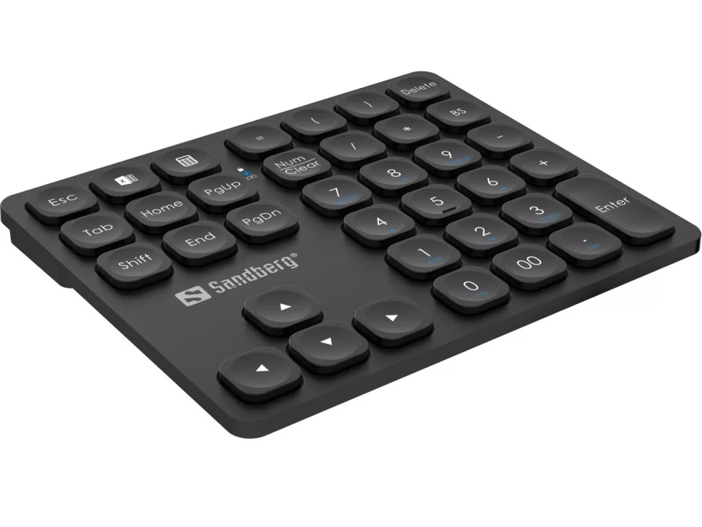 A Sandberg Wireless Numeric Keypad Pro a laptop billentyűzetének intelligens kiterjesztése. A 36 billentyű teljes számbillentyűzetet, gyorsbillentyűket, nyílbillentyűket és egyebeket foglal magában.