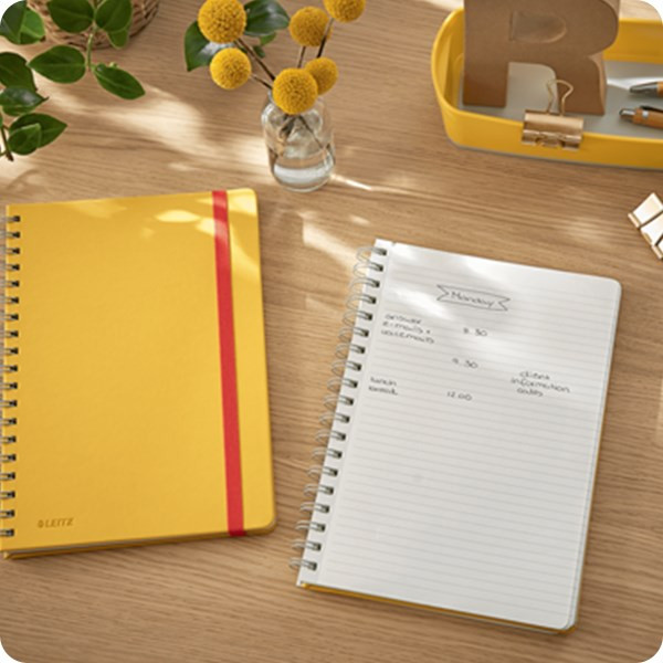 Spirálfüzet vonalas LEITZ B/5 80 lapos Cosy Soft Touch keményfedeles melegsárga