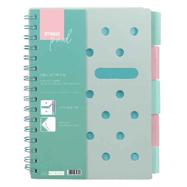 Spirálfüzet vonalas STREET Pad A/4 100 lapos regiszteres pasztell zöld