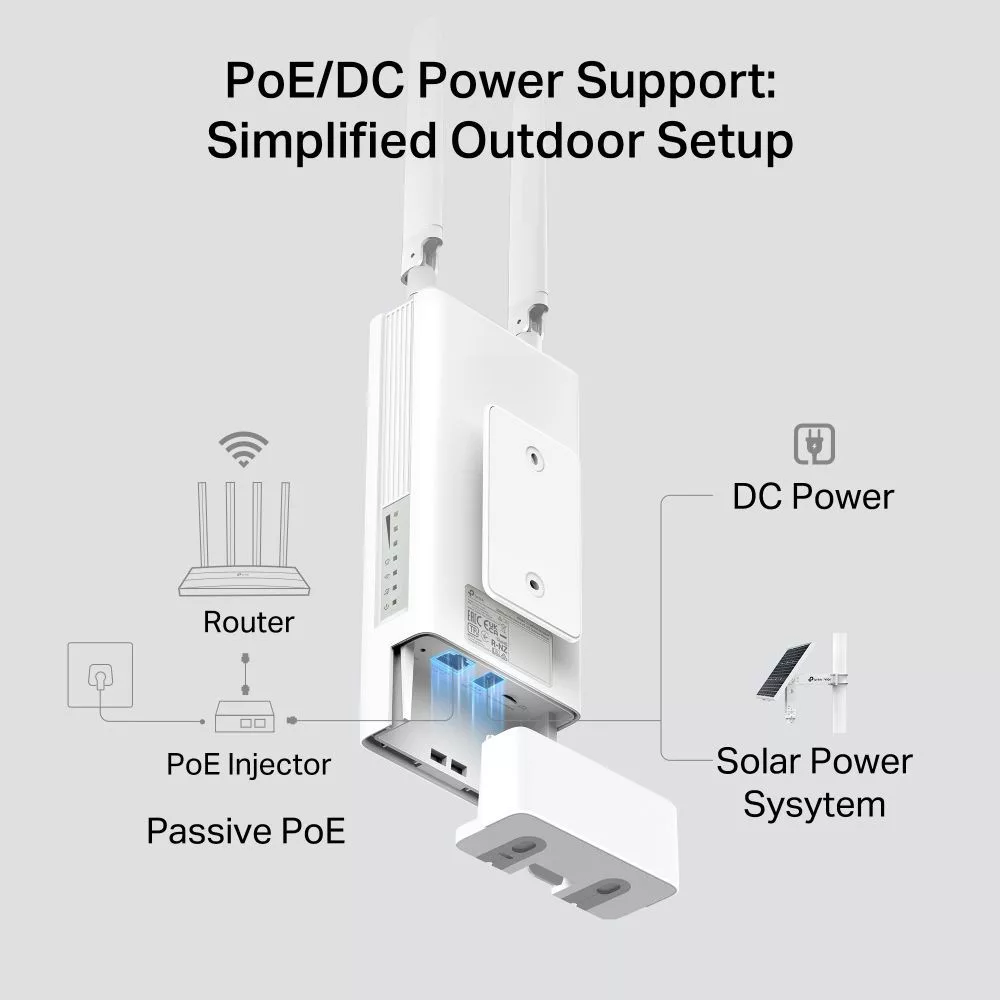 PoE/DC tápegység: Támogatja a 802.3af és a passzív PoE szabványt, lehetővé téve az egyszerű telepítést.