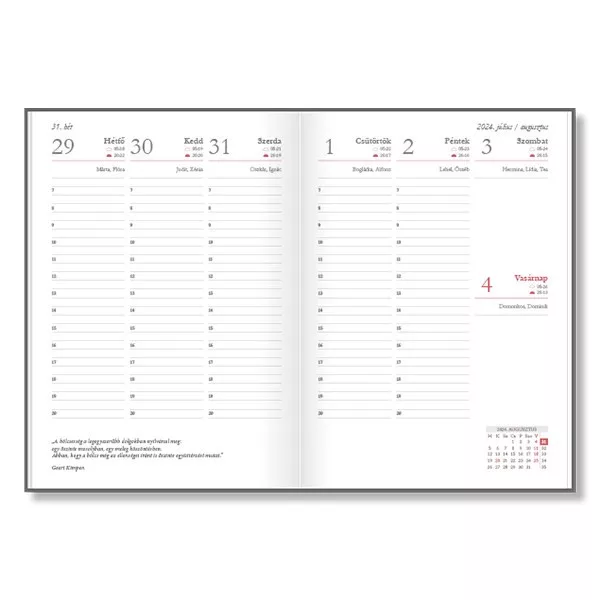 - bőséges hely jegyzetekhez, feladatlistákhoz és fontos gondolatokhoz.