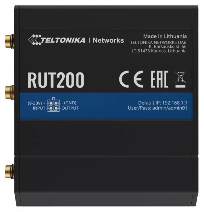 A RUT200 egy kompakt ipari cellás router, amely megbízható, kritikus fontosságú kapcsolatot biztosít az olyan iparágakban szokásos szigorú körülmények között, mint az automatizálás, a szállítás és a gyártás. Ez a modell 4G LTE-vel, Wi-Fi-vel és két Ethernet-porttal rendelkezik, így ideális az elsődleges és a tartalékkapcsolat gyors beállításához, távoli kezelési képességekkel.
