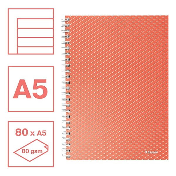 Spirálfüzet vonalas ESSELTE A/5 80 lapos Colour Breeze korall