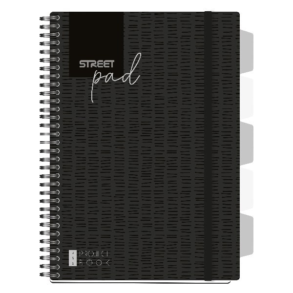 Spirálfüzet vonalas STREET Pad A/4 100 lapos regiszteres fekete