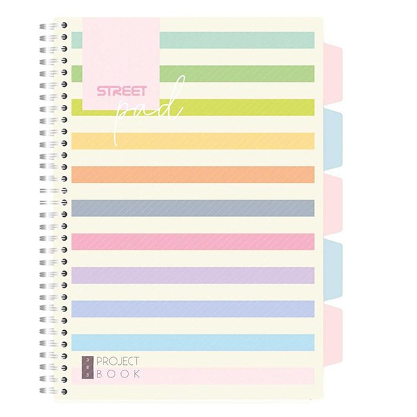 Spirálfüzet vonalas STREET Pad A/4 100 lapos regiszteres világos csíkos
