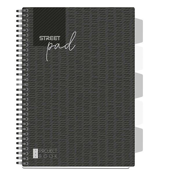 Spirálfüzet vonalas STREET Pad A/4 100 lapos regiszteres fekete
